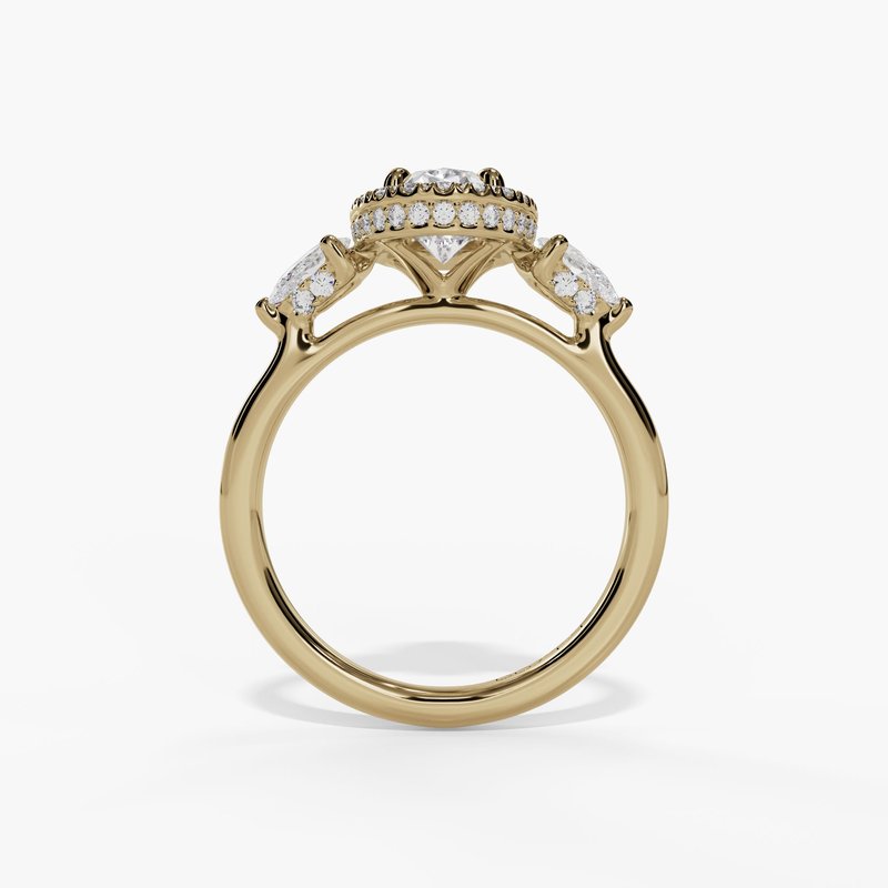 3 STONE OVAL LAB DIAMOND HALO WITH PEAR ACCENT ENG