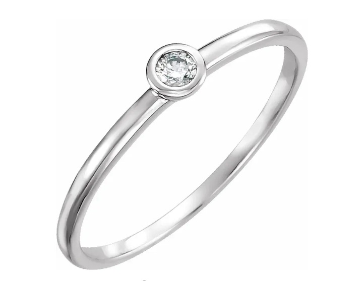 14K WHITE .06 CT NATURAL DIAMOND BEZEL-SET RING